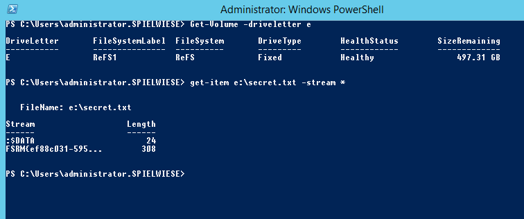 wird das File auf eine ReFS (Resilient File System) Partition verschoben, bleiben die Stream Daten erhalten. Klassifikationen werden bei ReFS weder von Server 2012 noch 2012R2 unterstützt. Da die Funktion für die Speicherung vorhanden ist, ist entweder der Support für ReFS geplant, oder die Informationen sollen nach dem Rückverschieben nach NTFS erhalten bleiben?