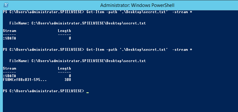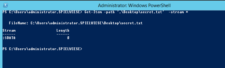 $DATA verweist auf die Nutzdaten und wird „unnamed data stream“ genannt. Die Syntax lautet $DATA:““, und da der Wert zwischen den „“ eben unnamed ist, ist die Schreibweise $DATA. Bei einem alternate Stream wäre es $DATA:“alternate“.