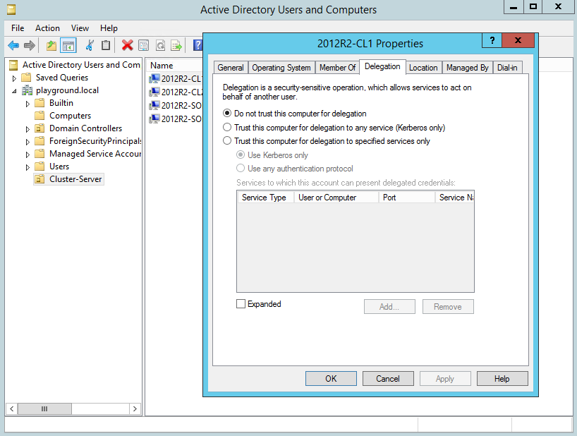 Active Directory Users and Computer, Account des Computers der eine Delegierung erhalten soll